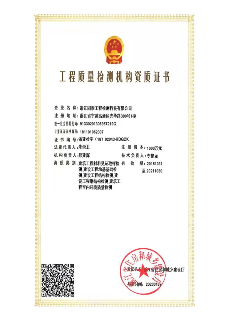 工程质量检测机构资质证书
